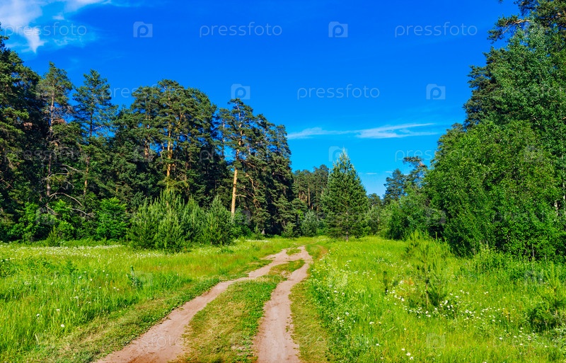 Грунтовая дорога в лесу в летний день