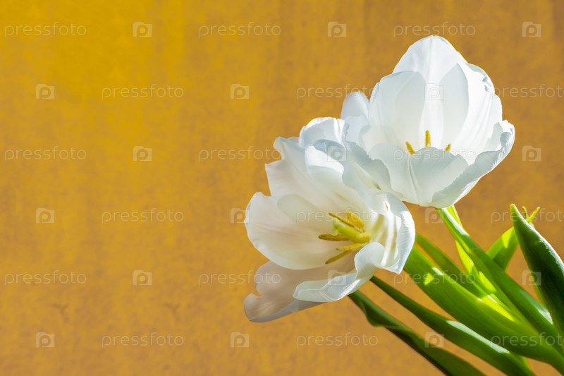 Белый тюльпан на оранжевом фоне