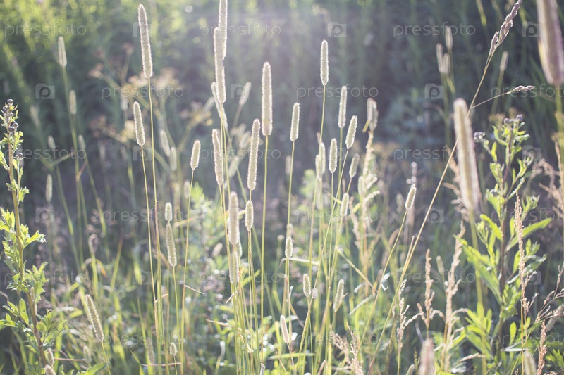 Цветы подорожника в лучах утреннего солнца
