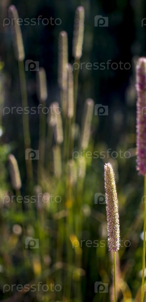 Цветы подорожника в лучах утреннего солнца
