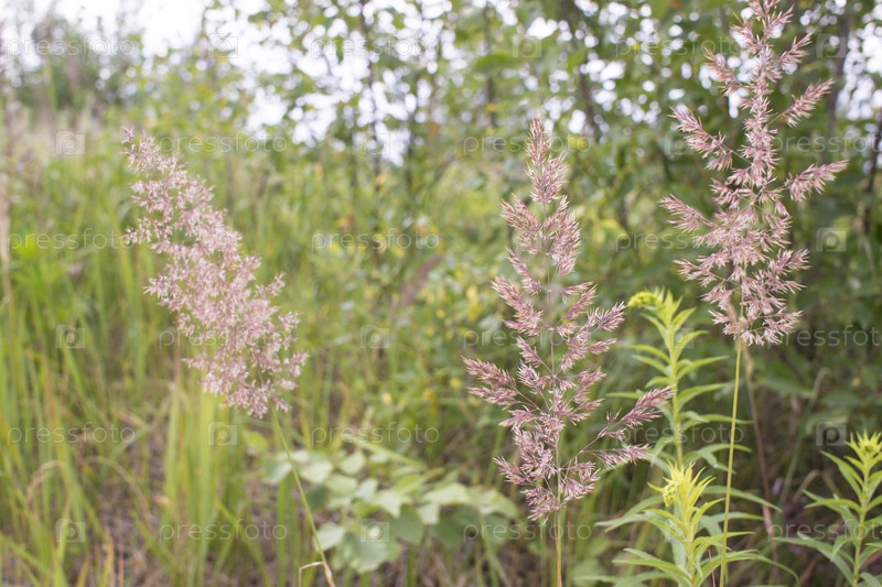 Цветущие колосья сорняков. натуральный газон на ярком солнце