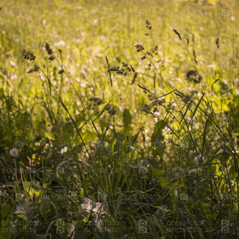 Цветущие колосья сорняков. натуральный газон на ярком солнце