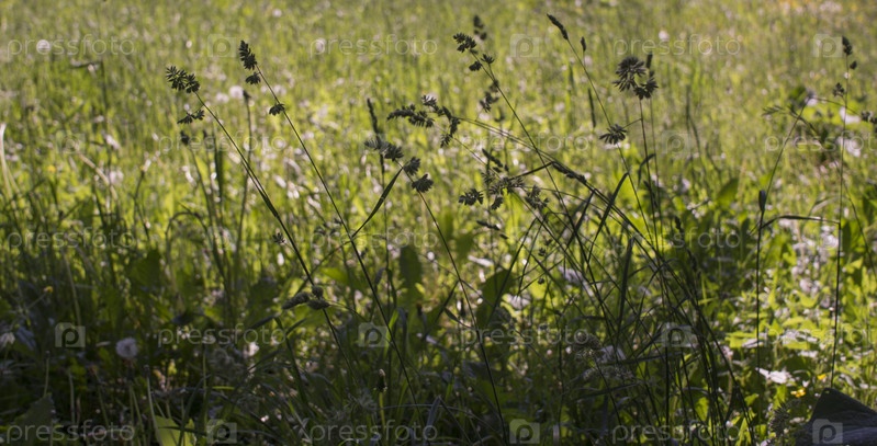Цветущие колосья сорняков. натуральный газон на ярком солнце