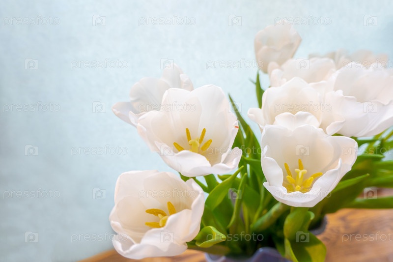 Белый тюльпан на голубом фоне