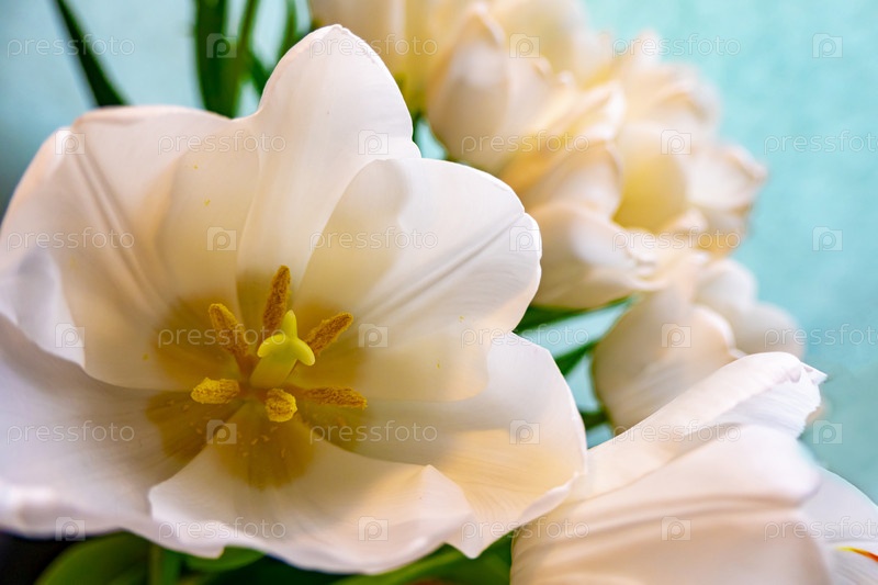 Белый тюльпан на голубом фоне