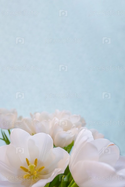 Белый тюльпан на голубом фоне