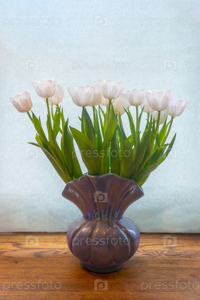 Белый тюльпан на голубом фоне