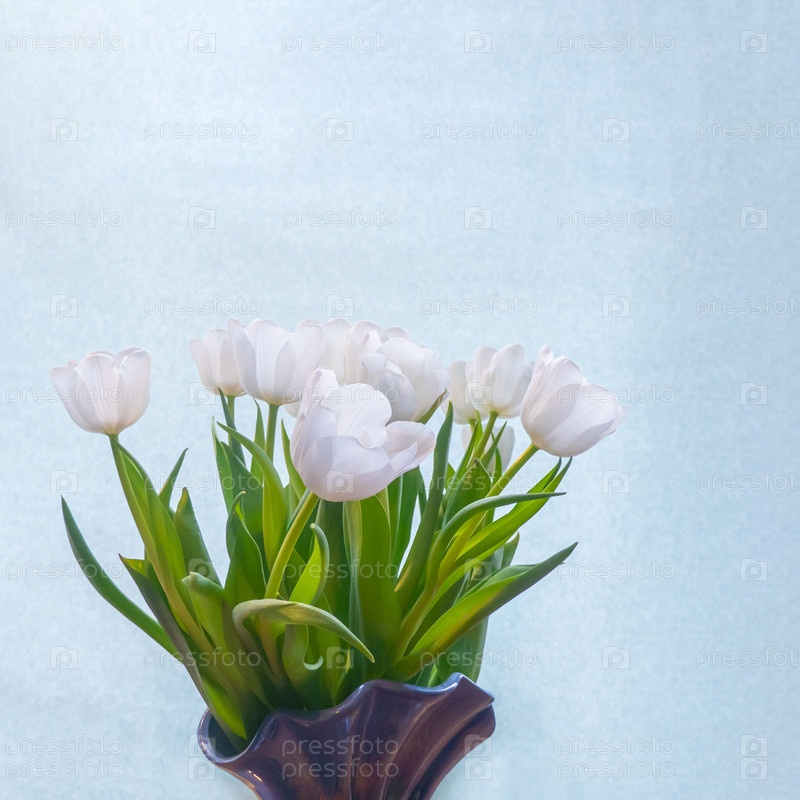 Белый тюльпан на голубом фоне