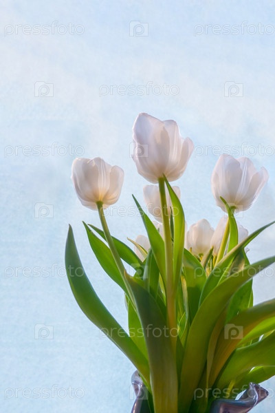 Белый тюльпан на голубом фоне