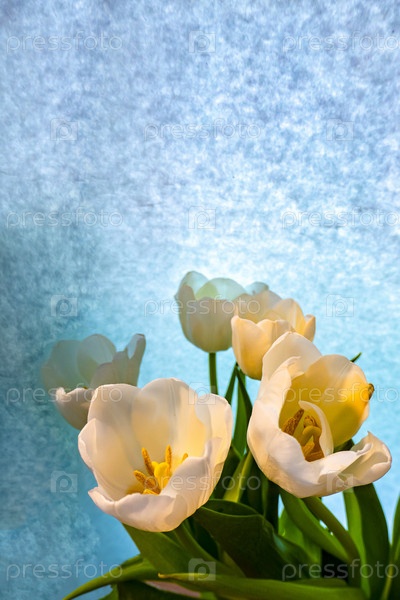 Белый тюльпан на голубом фоне