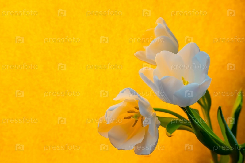 Белый тюльпан на оранжевом фоне