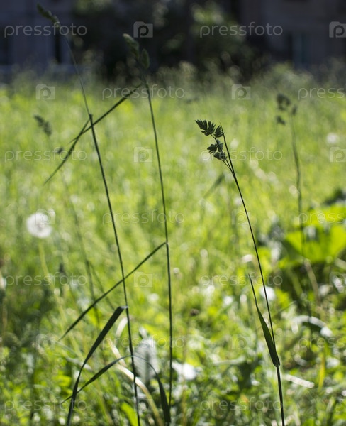 Цветущие колосья сорняков. натуральный газон на ярком солнце