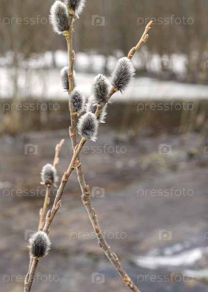 Две ветки ивы на фоне разлившейся реки