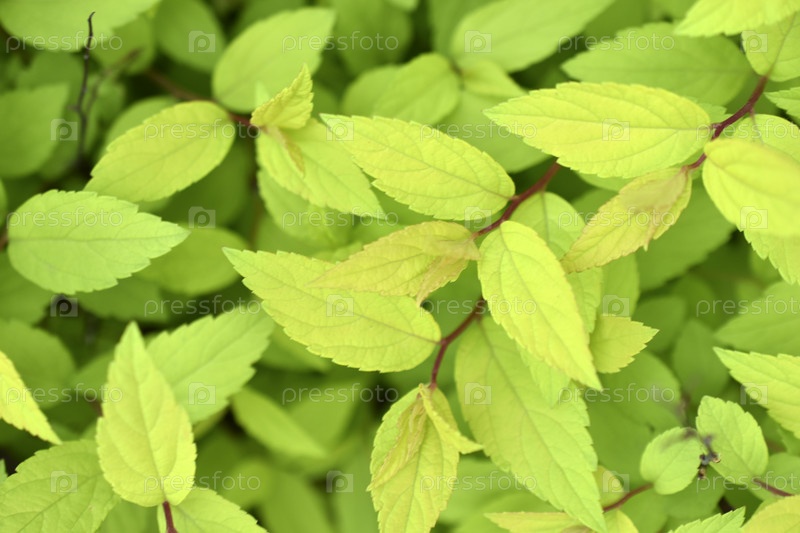 Зеленые листья спиреи японской. Фон зеленых листьев