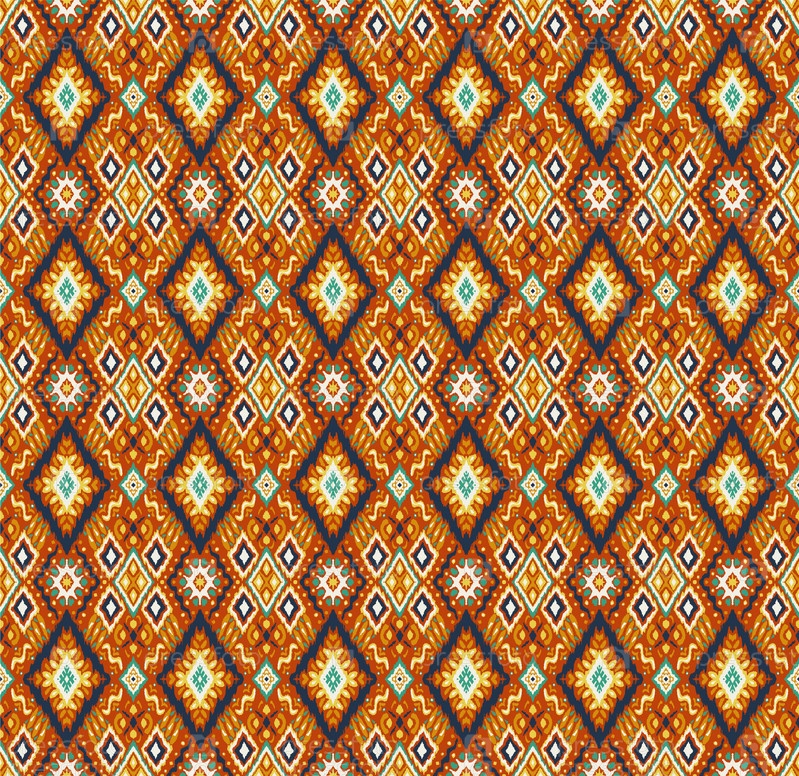 Икат геометрический фольклорный орнамент с бриллиантами. Племенная этническая векторная текстура. Бесшовный полосатый узор в стиле ацтеков. Народная вышивка. Индийский, скандинавский, цыганский, мексиканский, африканский ковер