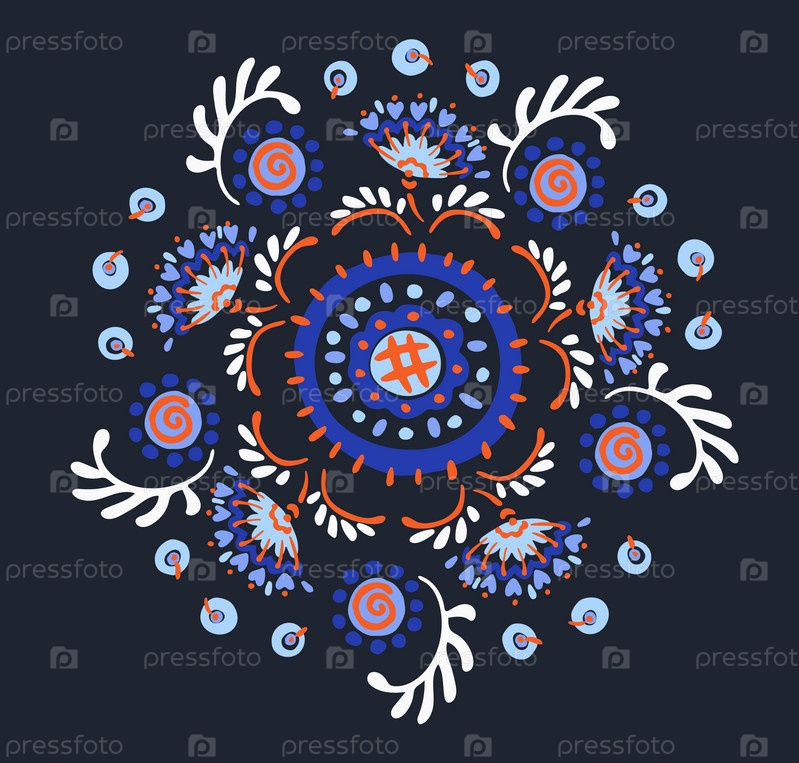 Набор этнических элементов. Бордюр представляет собой полосу с цветами, листьями, ветками, вензелями. Народная вышивка. Славянский, украинский, русский мотив. Хохлома, матрешка, дымковская игрушка. Мексиканский, индийский, цыганский ковер. Вязаное кружево