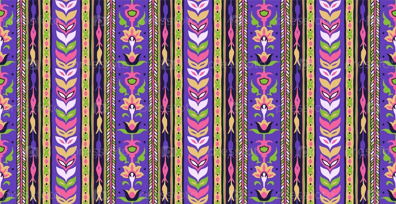 Геометрический дамасский орнамент. Икат границы. Этническая вышивка с листьями и монограммами. Племенная векторная текстура. Бесшовный народный узор в ацтекском стиле. Индийский, скандинавский, цыганский, мексиканский, африканский ковер