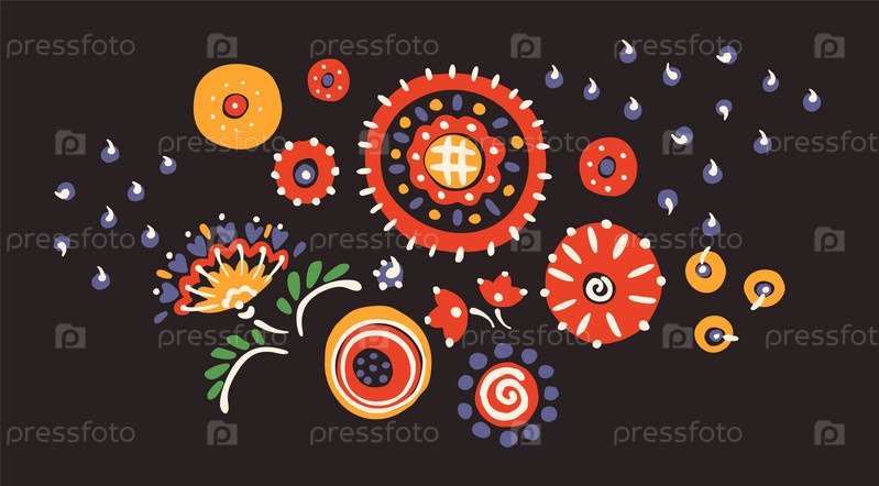 Набор этнических элементов. Бордюр представляет собой полосу с цветами, листьями, ветками, вензелями. Народная вышивка. Славянский, украинский, русский мотив. Хохлома, матрешка, дымковская игрушка. Мексиканский, индийский, цыганский ковер. Вязаное кружево