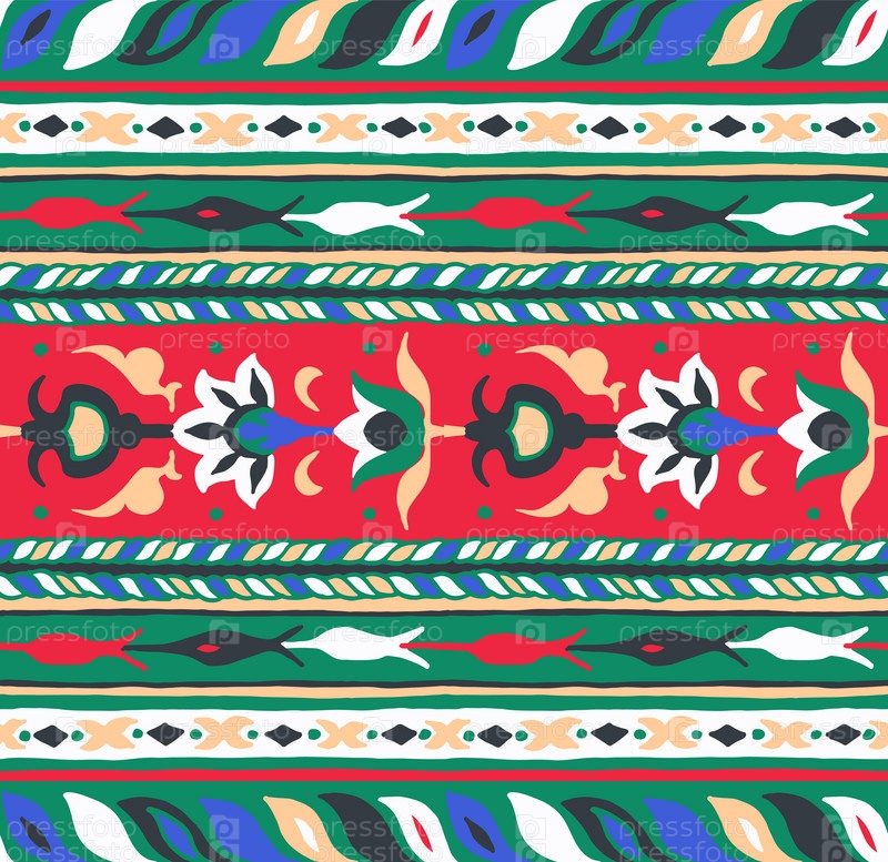 Геометрический фольклорный орнамент икат. Племенная этническая векторная текстура. Бесшовный полосатый узор в стиле ацтеков. Рисунок племенной вышивки. Индийский, скандинавский, цыганский, мексиканский, народный узор