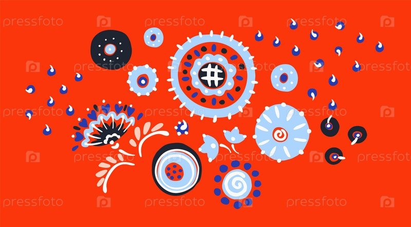 Набор этнических элементов. Бордюр представляет собой полосу с цветами, листьями, ветками, вензелями. Народная вышивка. Славянский, украинский, русский мотив. Хохлома, матрешка, дымковская игрушка. Мексиканский, индийский, цыганский ковер. Вязаное кружево