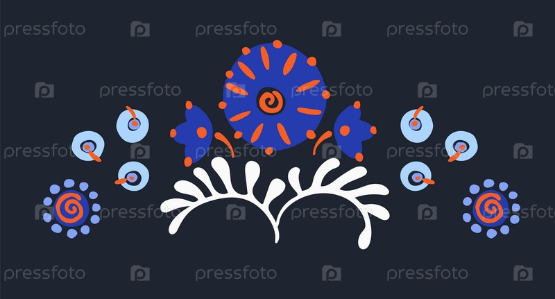 Набор этнических элементов. Бордюр представляет собой полосу с цветами, листьями, ветками, вензелями. Народная вышивка. Славянский, украинский, русский мотив. Хохлома, матрешка, дымковская игрушка. Мексиканский, индийский, цыганский ковер. Вязаное кружево
