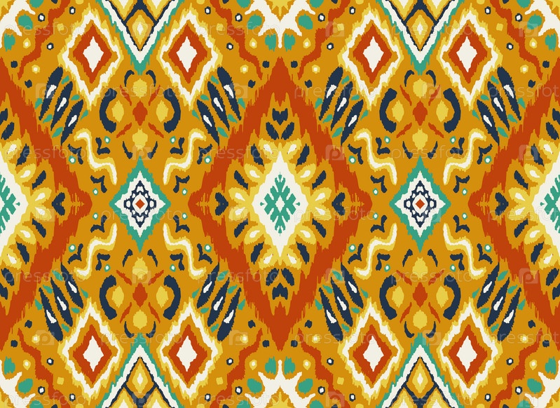 Икат геометрический фольклорный орнамент с бриллиантами. Племенная этническая векторная текстура. Бесшовный полосатый узор в стиле ацтеков. Народная вышивка. Индийский, скандинавский, цыганский, мексиканский, африканский ковер