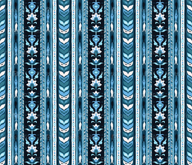 Геометрический дамасский орнамент. Икат границы. Этническая вышивка с листьями и монограммами. Племенная векторная текстура. Бесшовный народный узор в ацтекском стиле. Индийский, скандинавский, цыганский, мексиканский, африканский ковер