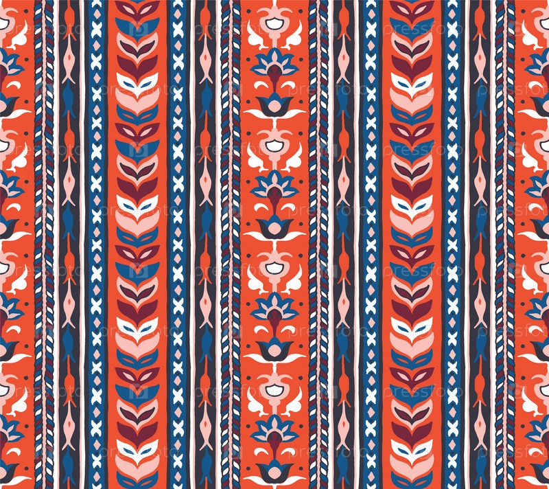 Геометрический дамасский орнамент. Икат границы. Этническая вышивка с листьями и монограммами. Племенная векторная текстура. Бесшовный народный узор в ацтекском стиле. Индийский, скандинавский, цыганский, мексиканский, африканский ковер