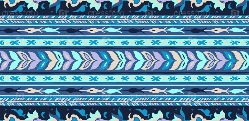 Геометрический фольклорный орнамент икат. Племенная этническая векторная текстура. Бесшовный полосатый узор в стиле ацтеков. Рисунок племенной вышивки. Индийский, скандинавский, цыганский, мексиканский, народный узор