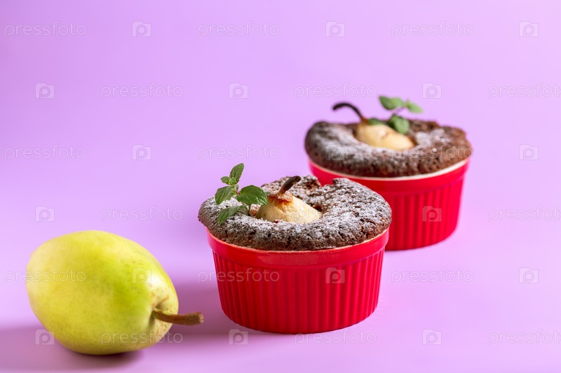 Шоколадные кексы с грушей и мятой