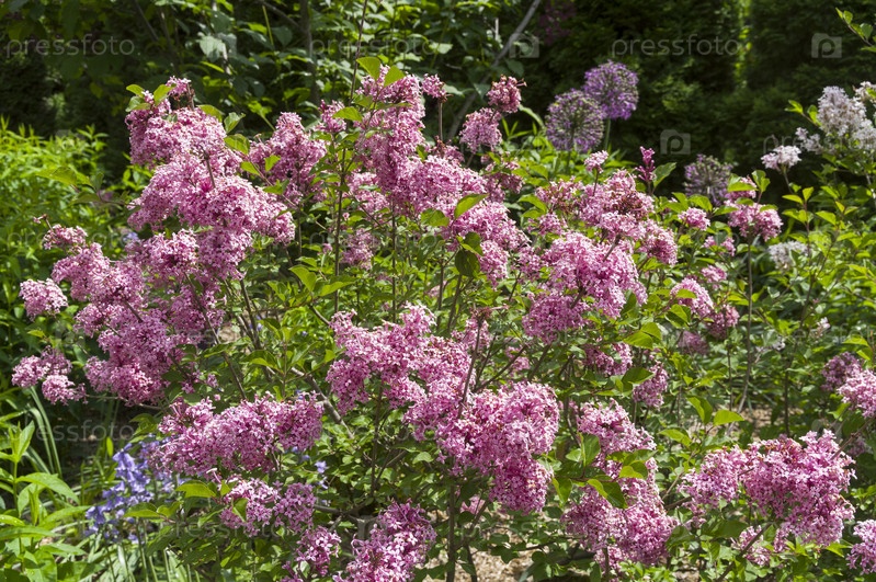 Цветущий розовый сирень сорта Flowerfesta Pink (лат. Syringa pubescens subsp. pubescens) в Аптекарском саду (филиал ботанического сада МГУ).Москва
