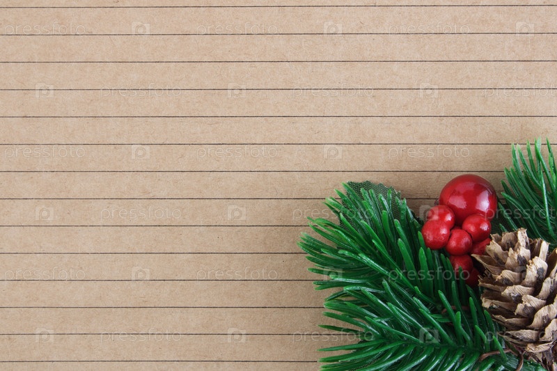 Рождественский фон. Лист разлинованной тетради или блокнот с рождественской веткой. Концепция Рождества и Нового года. Копировать пространство