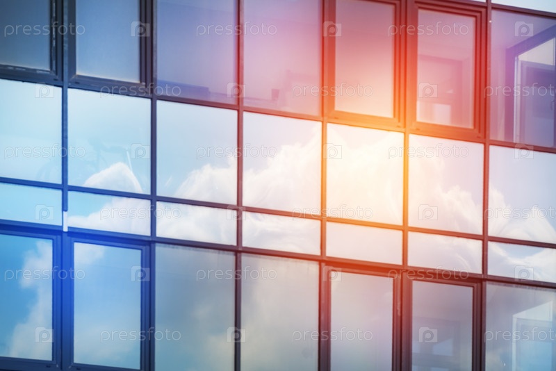 Отражение заката в окнах дома