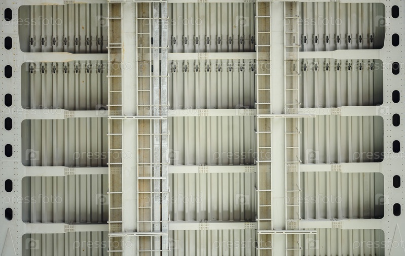Стальные балки автомобильного моста со стальными пластинами и заклепками. Текстура фона