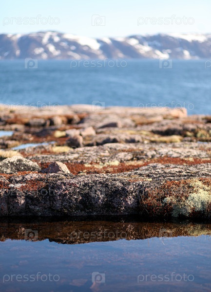Край тундры. Море на контрасте гор, ягеля и воды весной