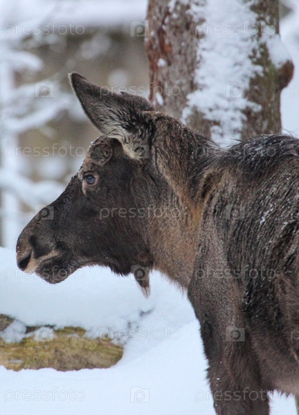 Лосенок на фоне дерева