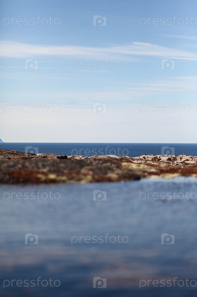 Вода в тундре на фоне Баренцева моря. Пейзаж