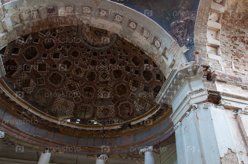Интерьер разрушенного старого православного храма