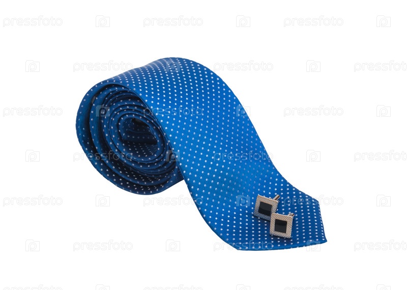 Стильный синий галстук и черные запонки, изолированные на белом фоне
