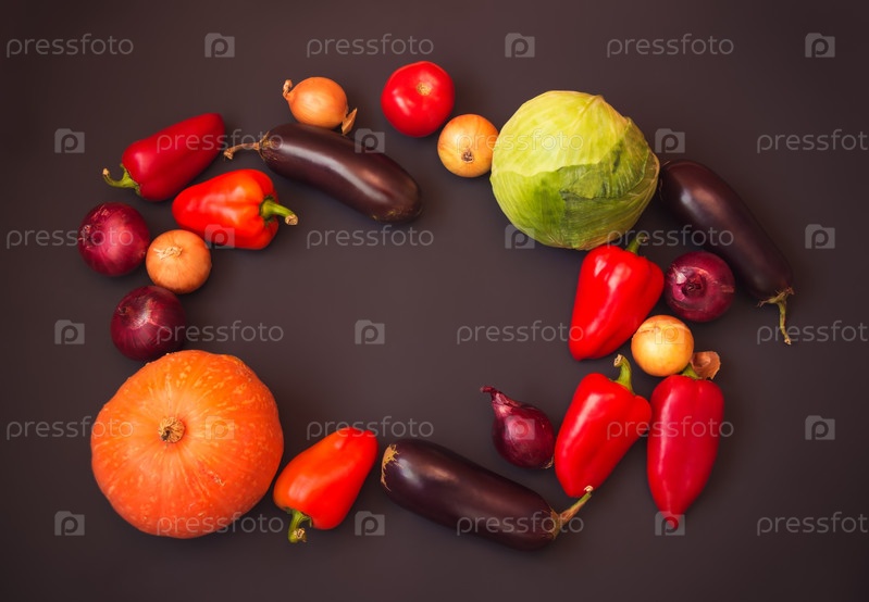 Рамка из разных свежих овощей на темном фоне