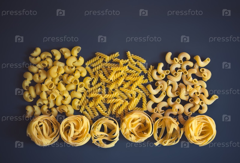 Граница из различных видов сырой пасты на темном фоне