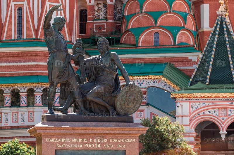 Памятник Кузьме Минину и Дмитрию Пожарскому перед собором Василия Блаженного на Красной площади в Москве, 2023 год