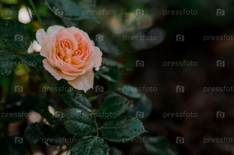 Красивые нежные пастельные розы с росой на рассвете. Красивый солнечный свет. Фоновое изображение зелено-розовое. Естественный, экологически чистый природный фон