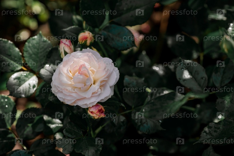 Красивые нежные пастельные розы с росой на рассвете. Красивый солнечный свет. Фоновое изображение зелено-розовое. Естественный, экологически чистый природный фон
