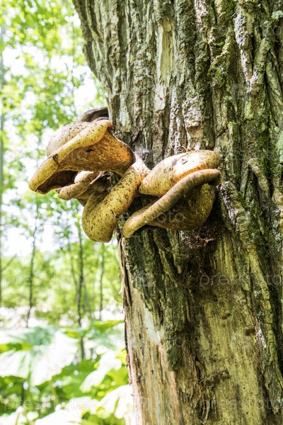 Грибы, растущие на засохшем дереве в лесу