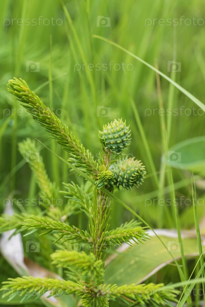 Молодые побеги хвойного растения