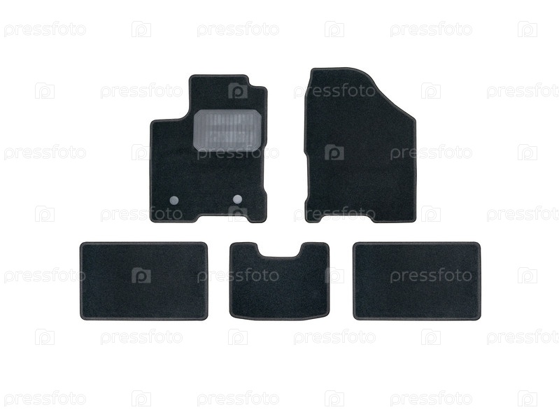 Черные текстильные автомобильные коврики на белом фоне