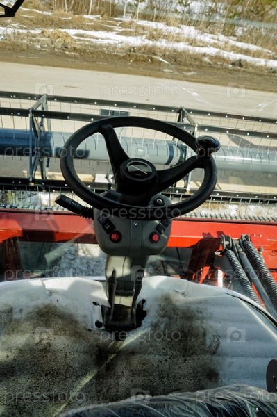 В кабине комбайнов на выставке сельскохозяйственной техники