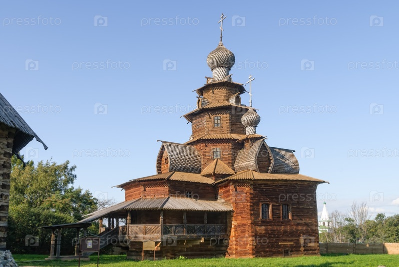 Суздаль, Россия - 29 августа 2009 г.: Музей деревянного зодчества. Преображенская церковь из села Козлятьева