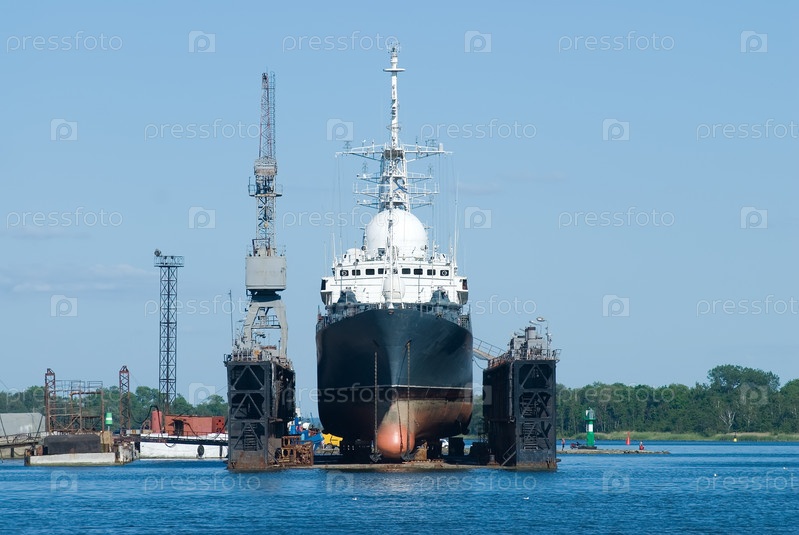 Большой корабль в сухом доке Балтийска